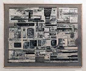 一方、平松輝子は、当時フォービズム的な絵を描いていた。しかし1960年代に入ると油絵と和紙、麻布のコラージュが始まりそれがさらに石膏や金属などのコラージュまで進む。いわゆるミクストメディアの走りである。