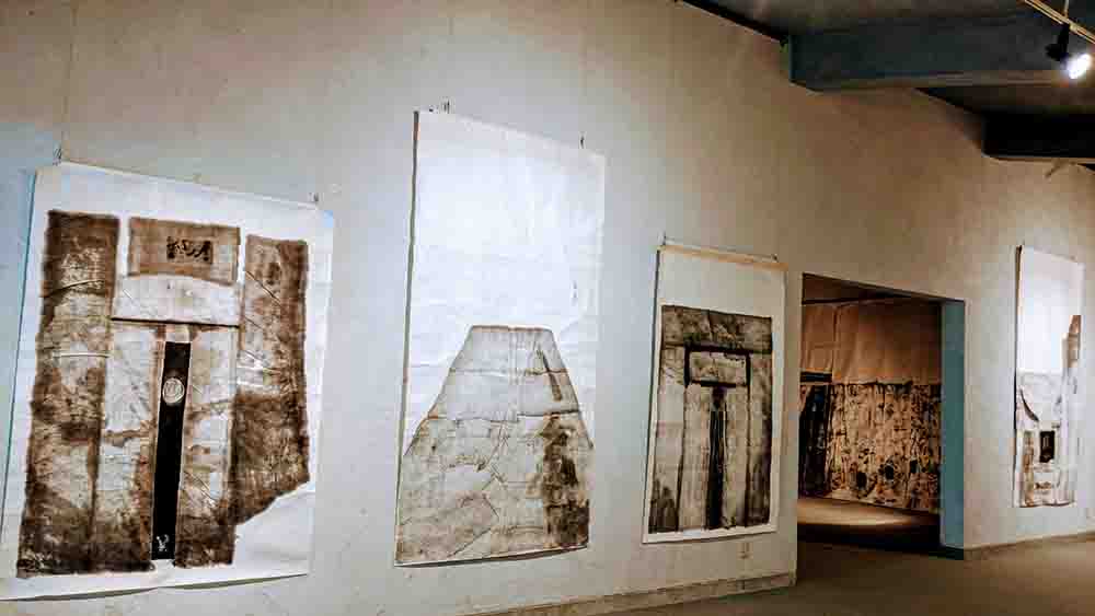 奥の展示室はピラミッドと王家の谷、そして手前の部屋はさまざまのエジプトの神殿を表した巨大な水墨画がならびあたかもエジプトの迷宮に迷い込んだかのよう。