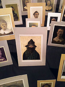 はっきり言って圧倒される。この中世ヨーロッパらしい村は架空で、作者の頭の中にしかないというのだ。しかし、それが日常さり気なく自然に降りてくると、その人物を描くのだという。名前も出てくれば付ける。リアリティという言葉を通り越して、長い時間をすり抜け跨いだ一人ひとりが今そこにいる……そんな感じだ。以前見た時は、エッチングのような版画かと思われた。しかし作者は、鉛筆、色鉛筆、そしてボールペンなどで、一つひとつ描くのだ。ざっと数えて今回五十を超える顔が集結した。ただ村はこの何倍もの住人がいるという。だれか、この作者の創作への姿勢と、生み出し続けられてきた顔の画に、もっと声をあげて欲しい気がする。