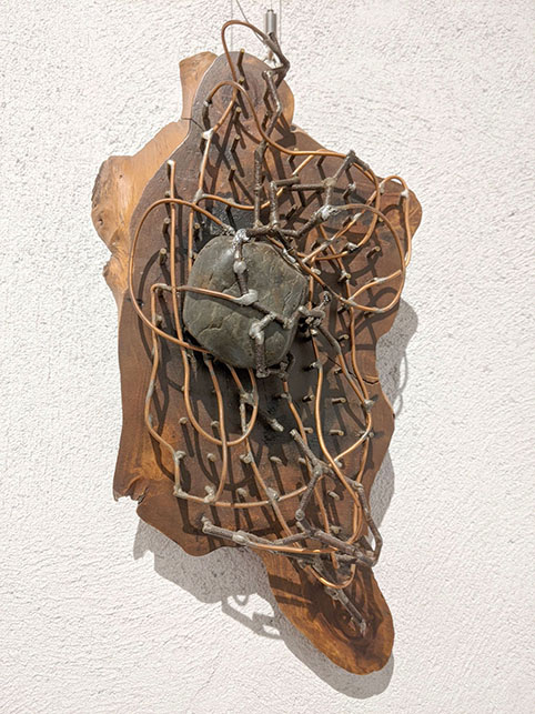 より立体造形的なシリーズでは、作者が住む近くの多摩川で採取した枯草(枯れ枝)が使われ、より作者の自然志向がうかがえる。